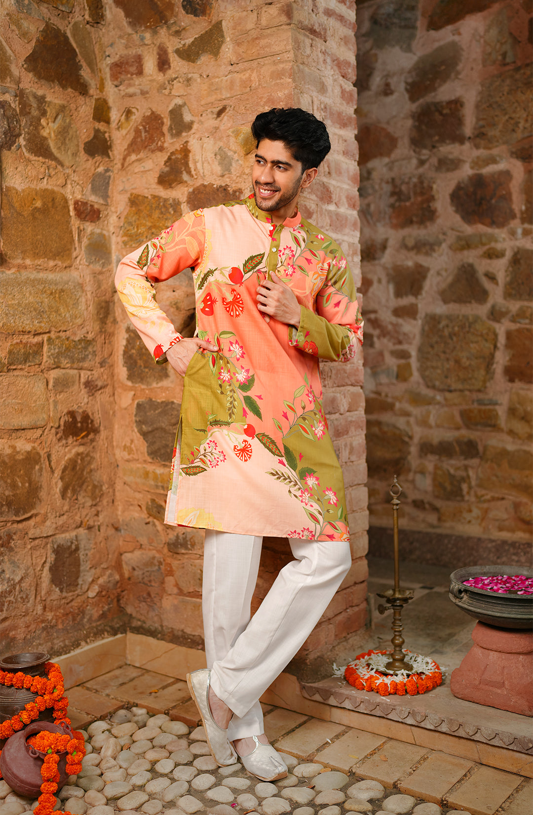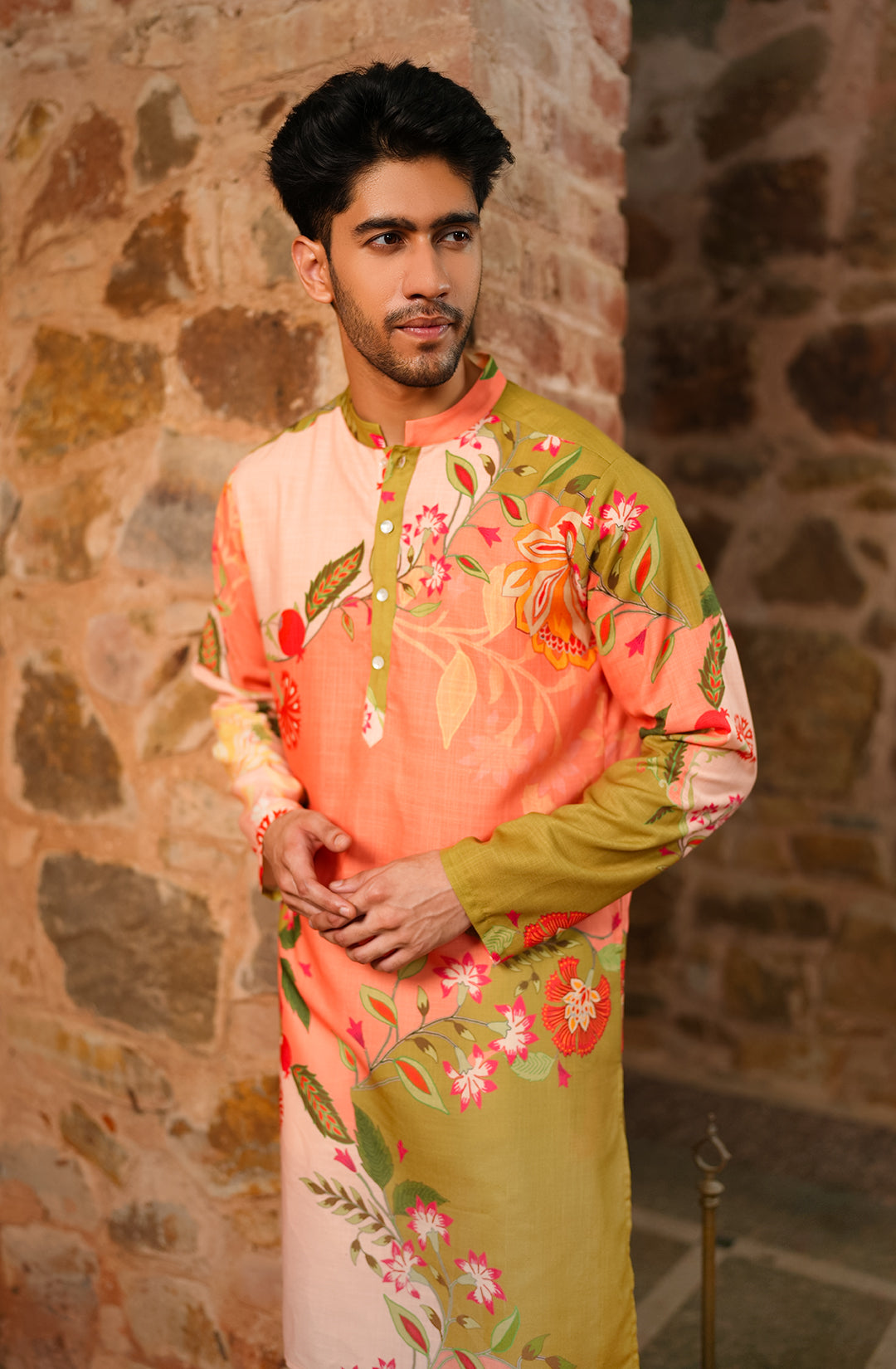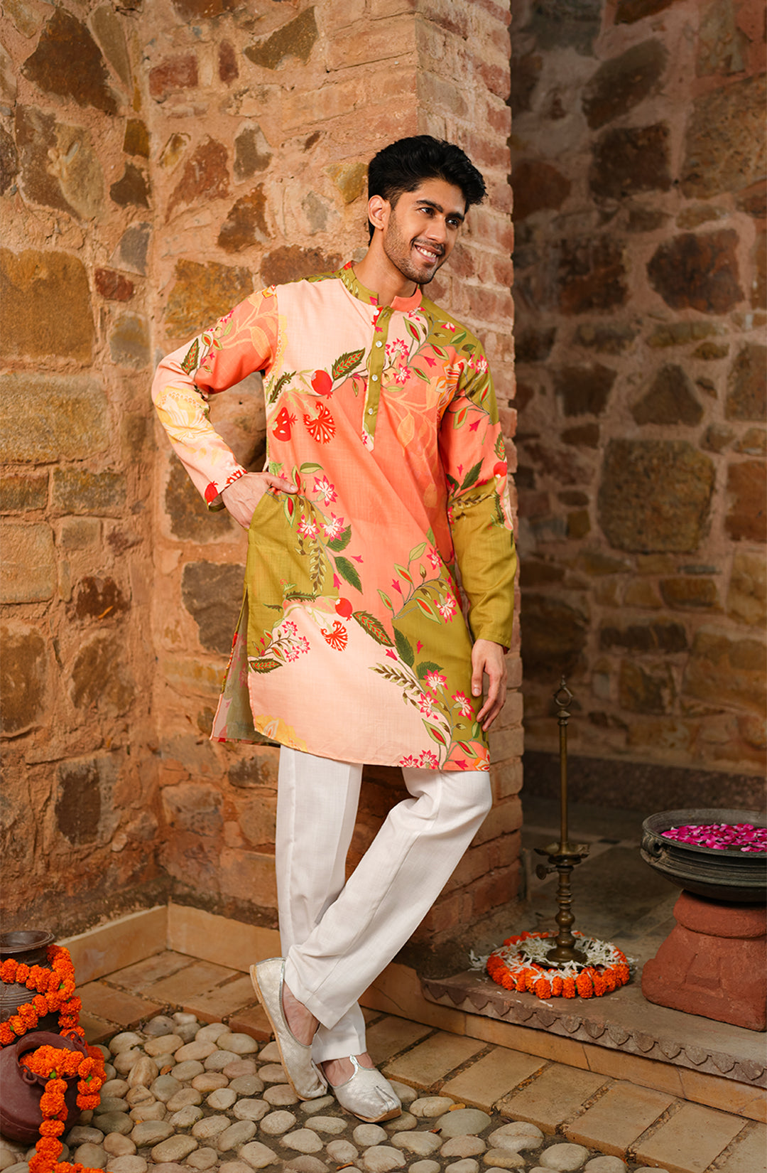 Elevate your festive style with this vibrant Men's Kurta, made from premium Kurta Slub for comfort and breathability. Featuring bold floral prints and a relaxed fit, this kurta is perfect for traditional celebrations or casual gatherings. With two practical pockets, it combines functionality with style.