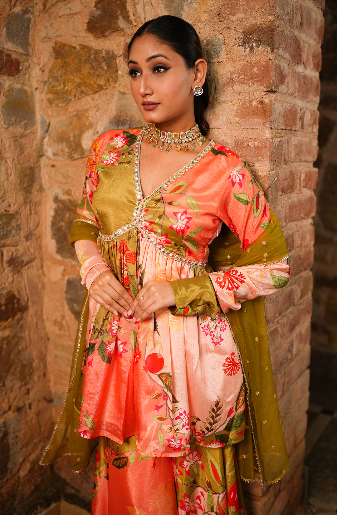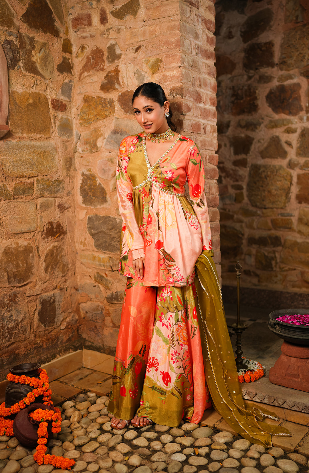 The Gulbagh Sharara Set adds a splash of color and charm, perfect for making a bold fashion statement.