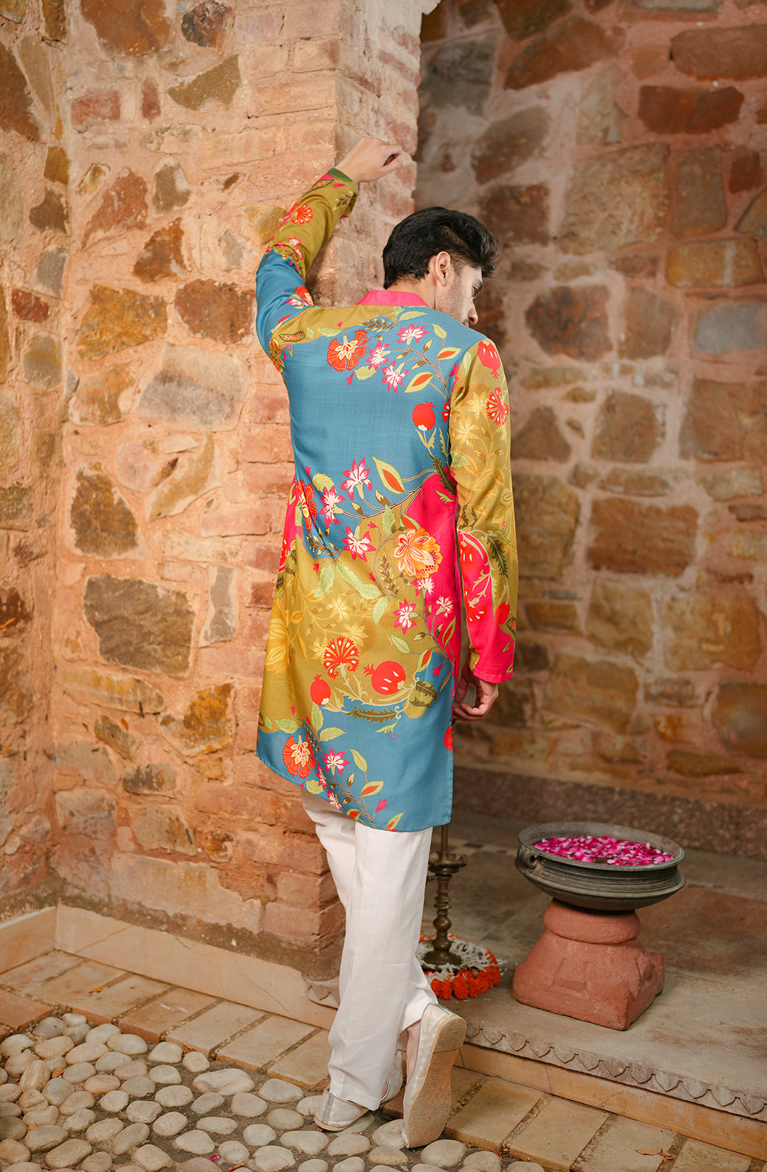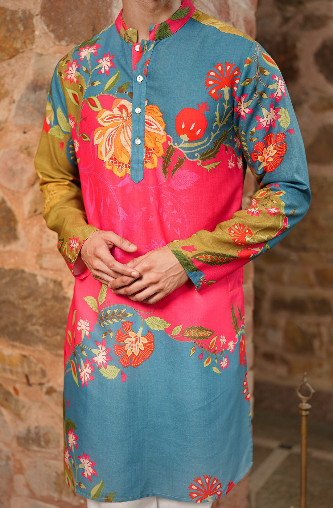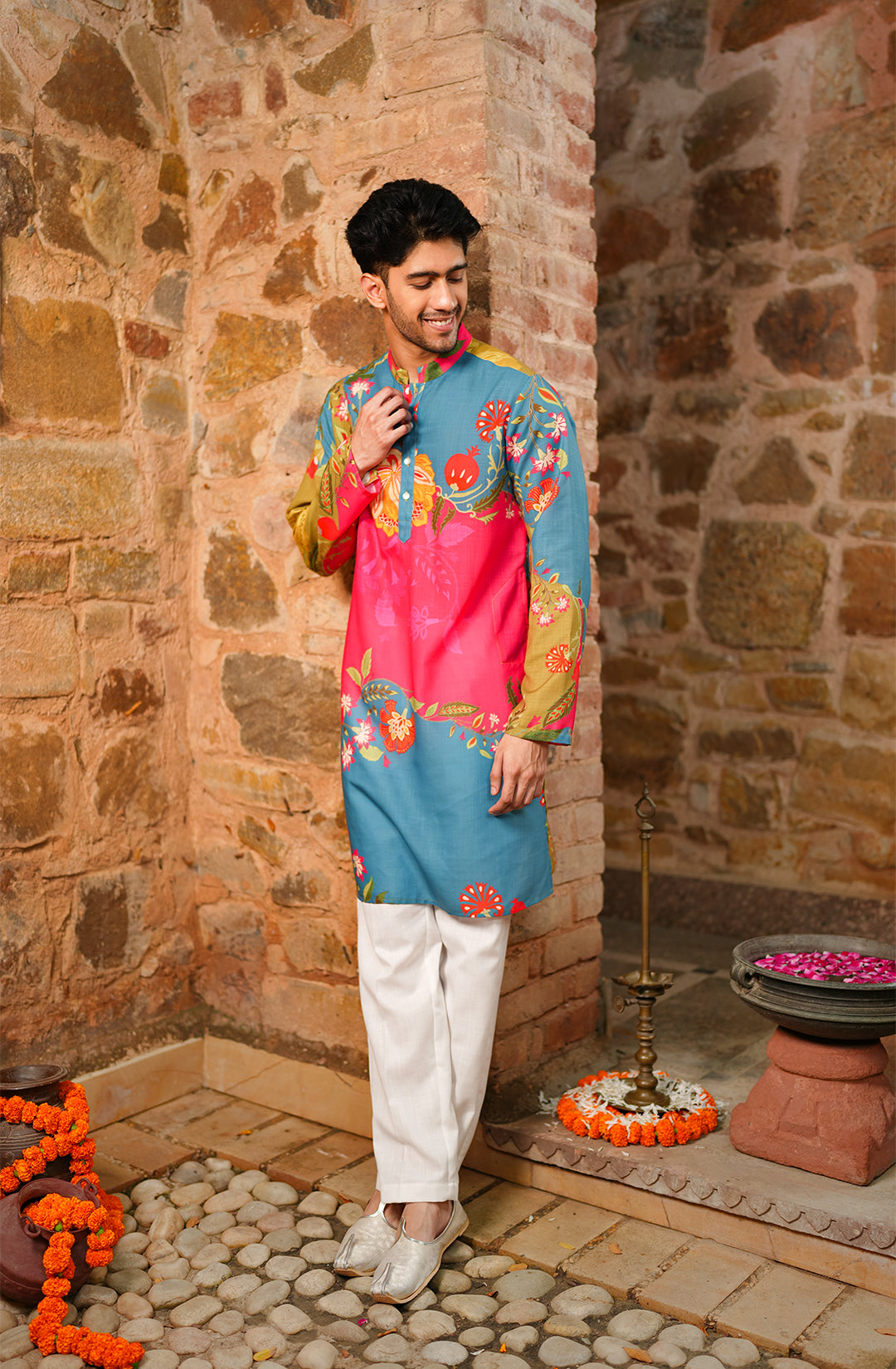 Elevate your festive style with this vibrant Men's Kurta, made from premium Kurta Slub for comfort and breathability. Featuring bold floral prints and a relaxed fit, this kurta is perfect for traditional celebrations or casual gatherings. With two practical pockets, it combines functionality with style.