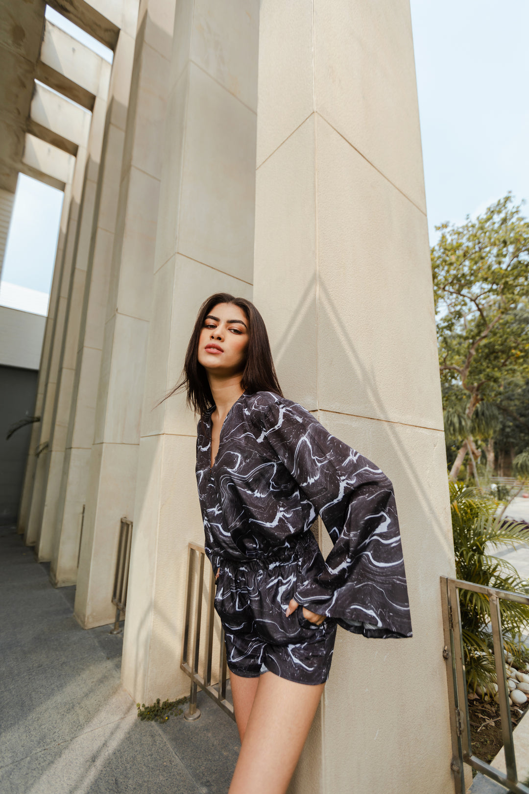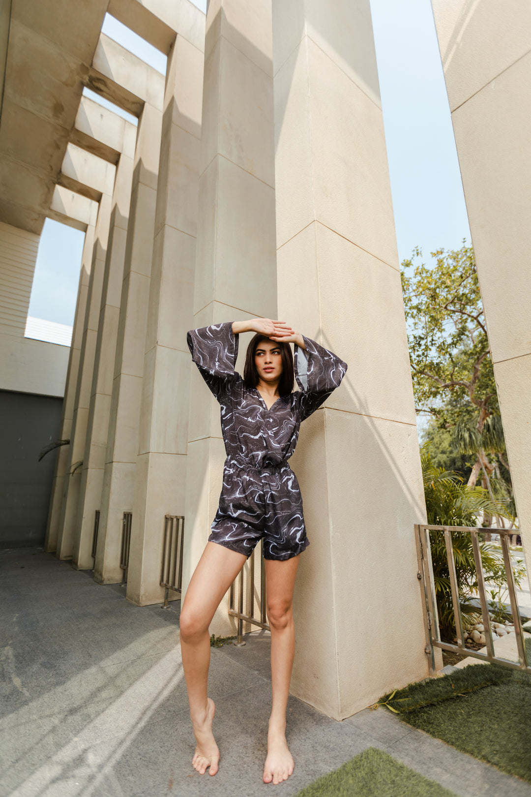 NEW ! Black marble Playsuit , made just for your all day comfort . The fabric is super trendy , soft and summer friendly .