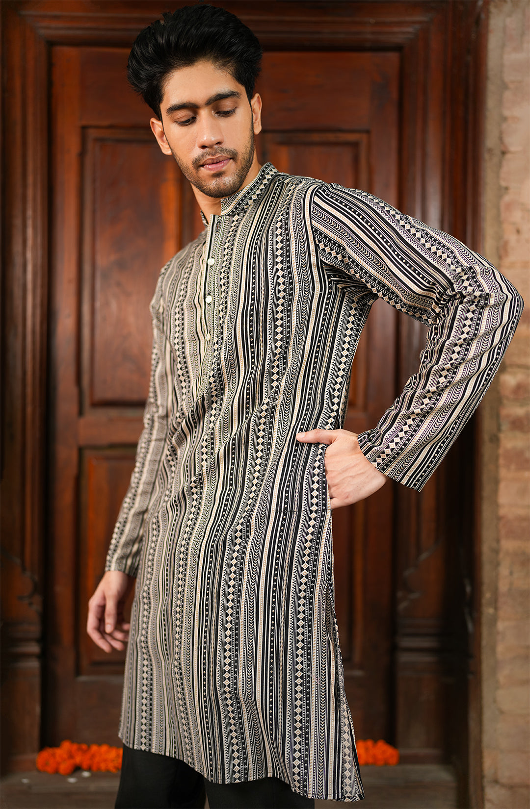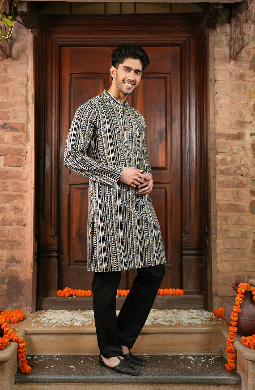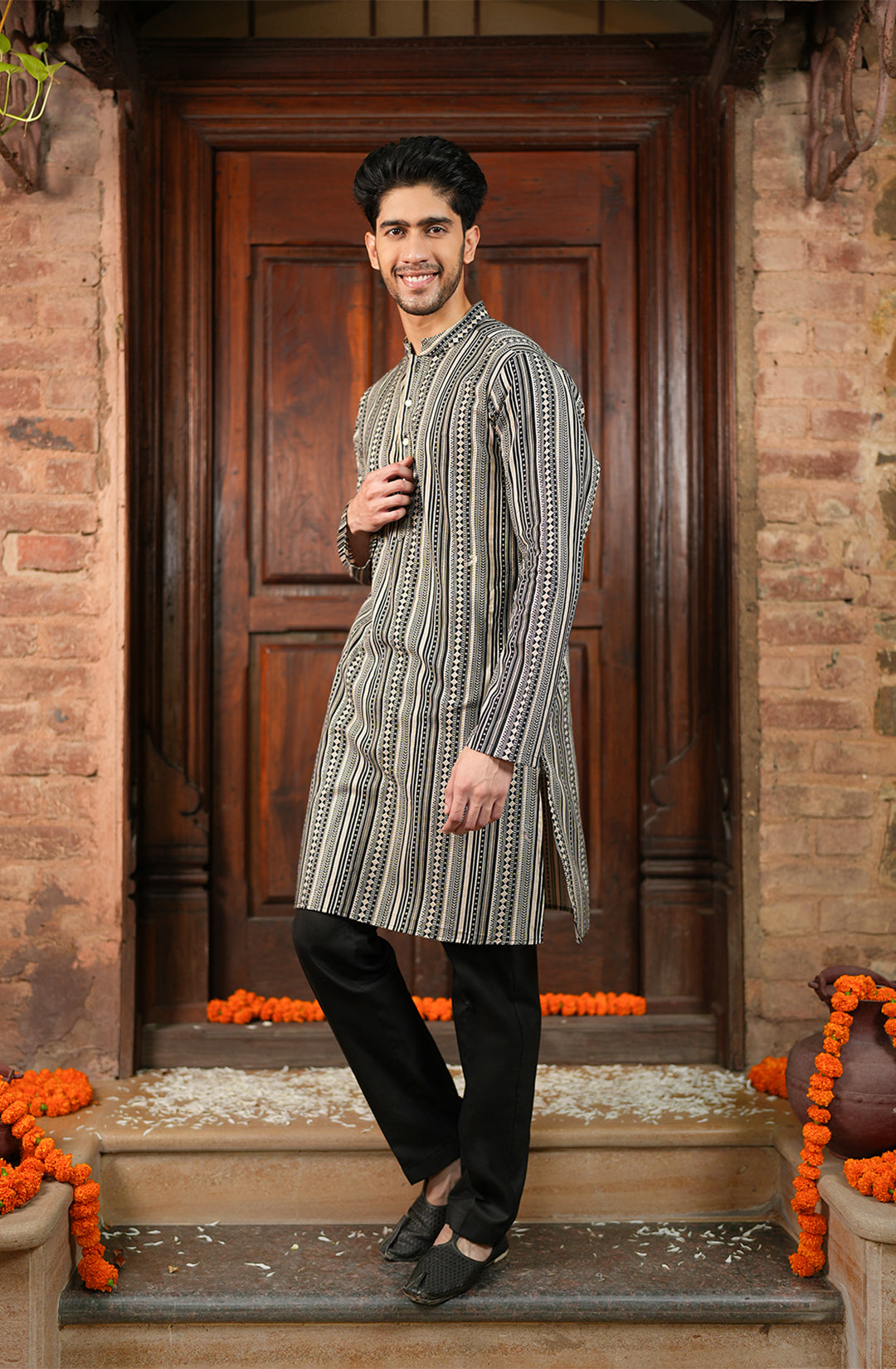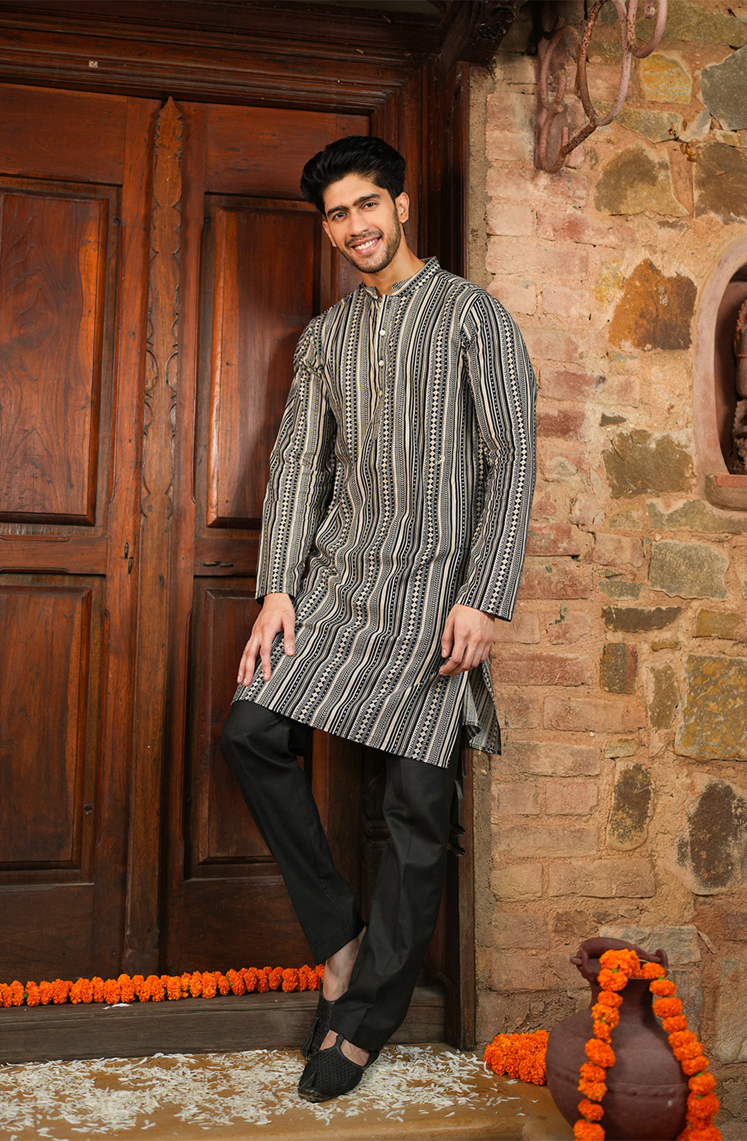 This stylish kurta is your go-to choice for making a bold statement at any festive occasion while staying comfortable.