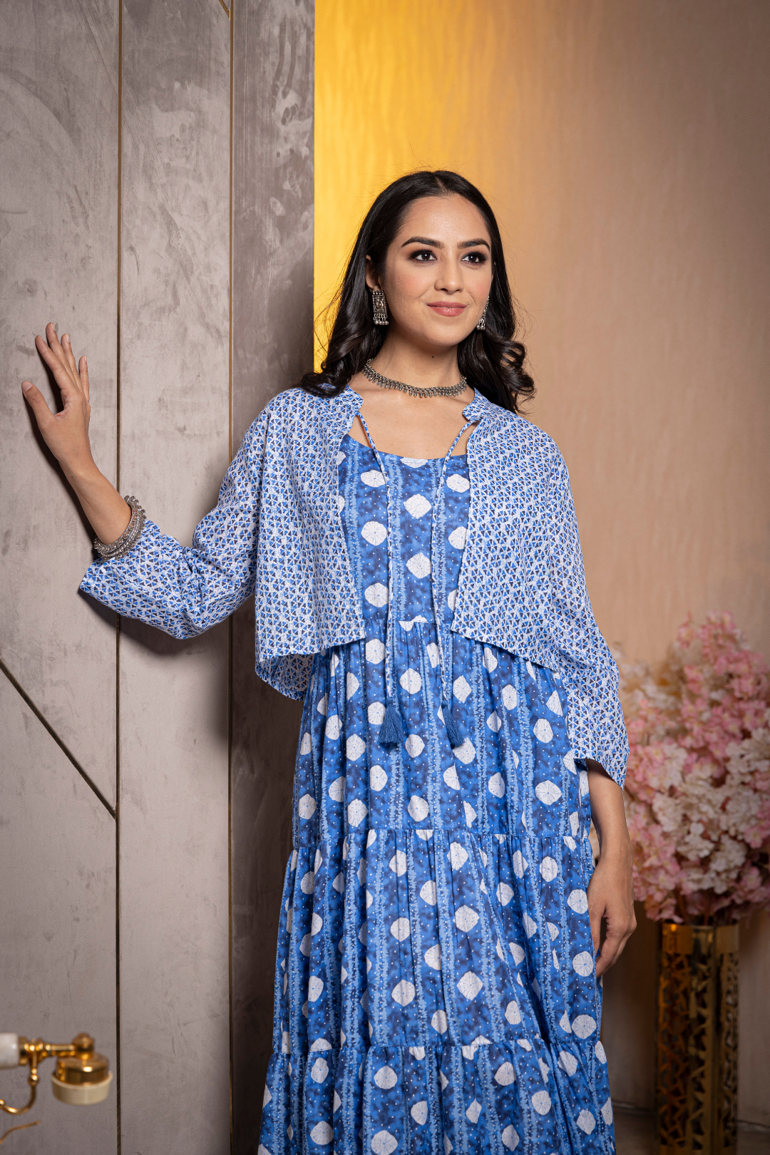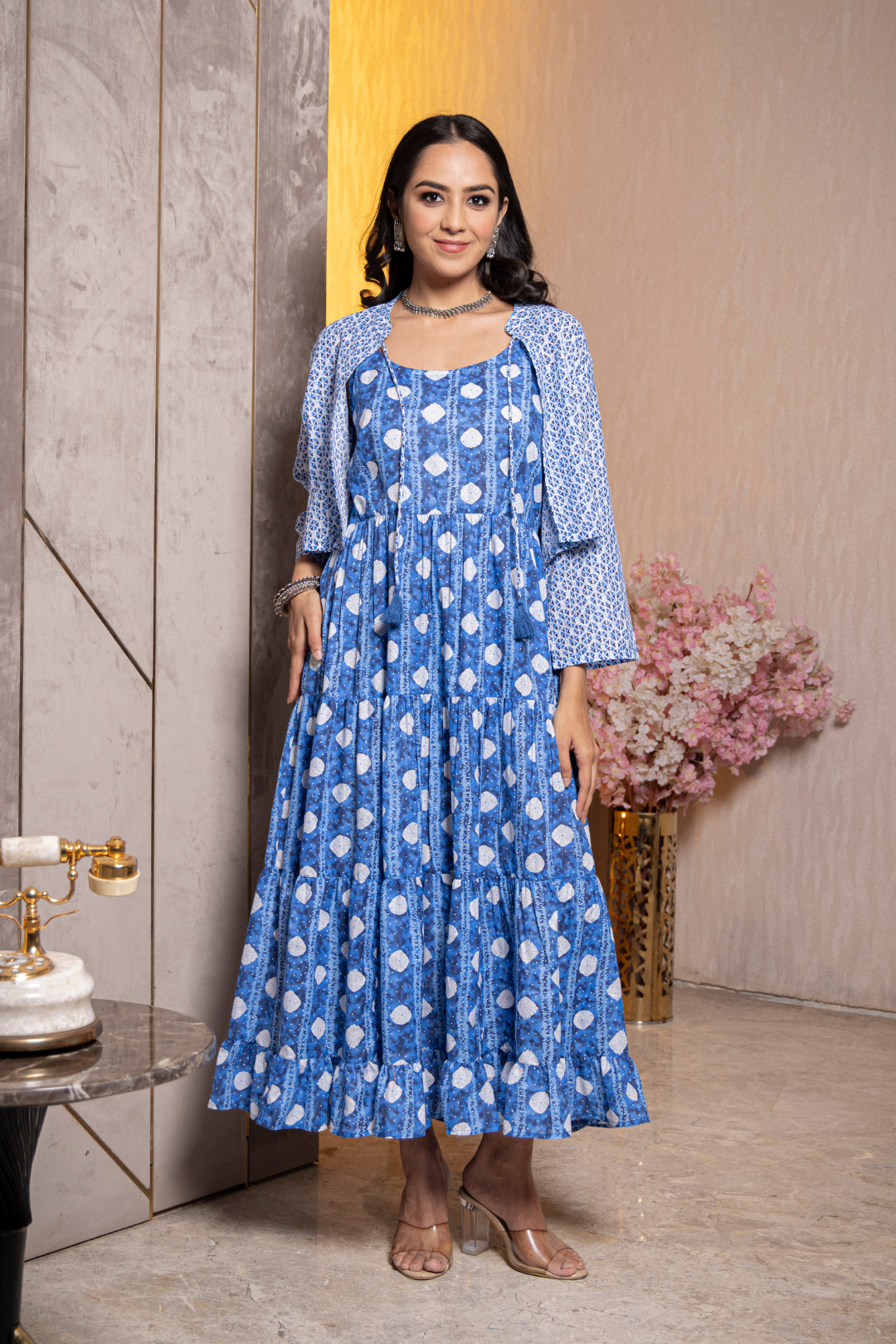 Beat the Heat with our all New Dress sets perfect for your summer mood . This set comes with a dress paired with a classic short jacket . The fabric is very summer friendly and fits and suits every body type . This dress can be perfect for your home comfort or to chill outside , can also be worn for traveling purpose or can be a perfect fashion statement for your vacation look.