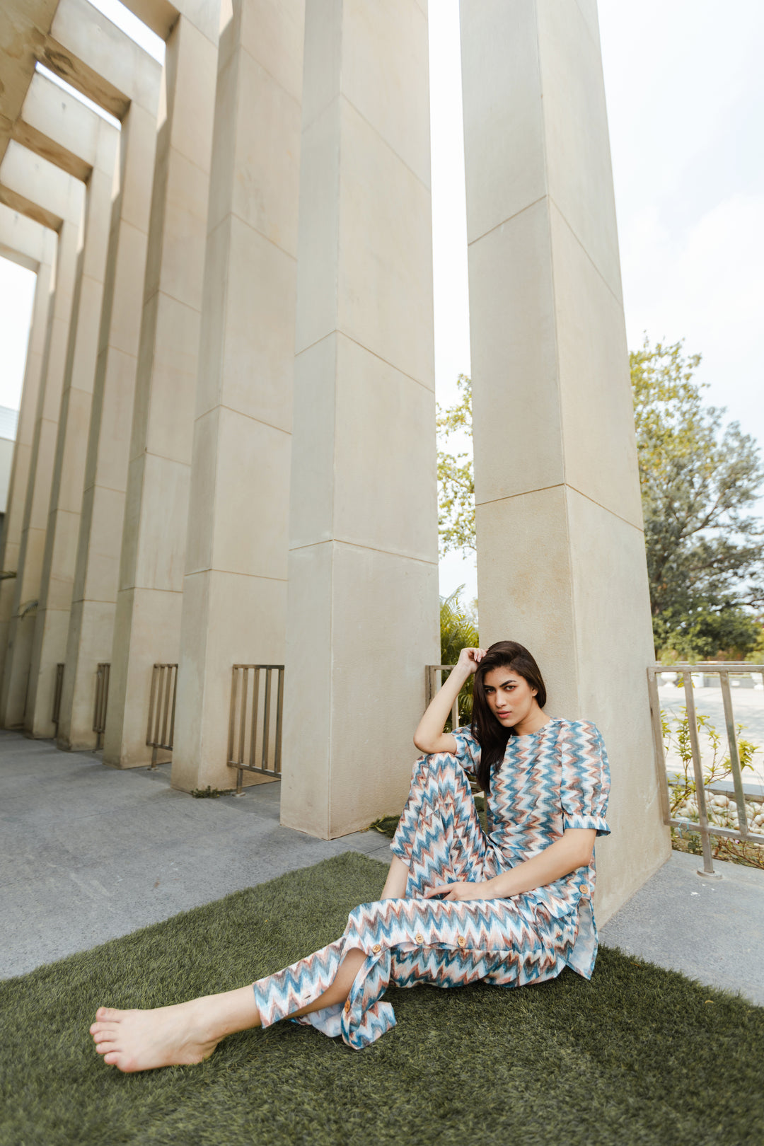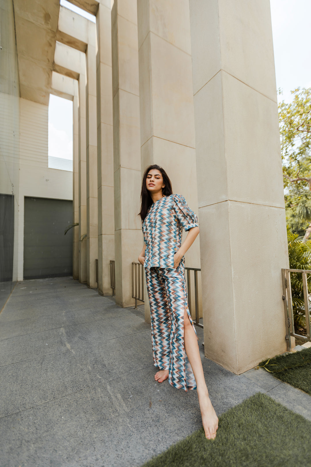 BLUE WAVE CO-ORD SET (WITH SLEEVE)