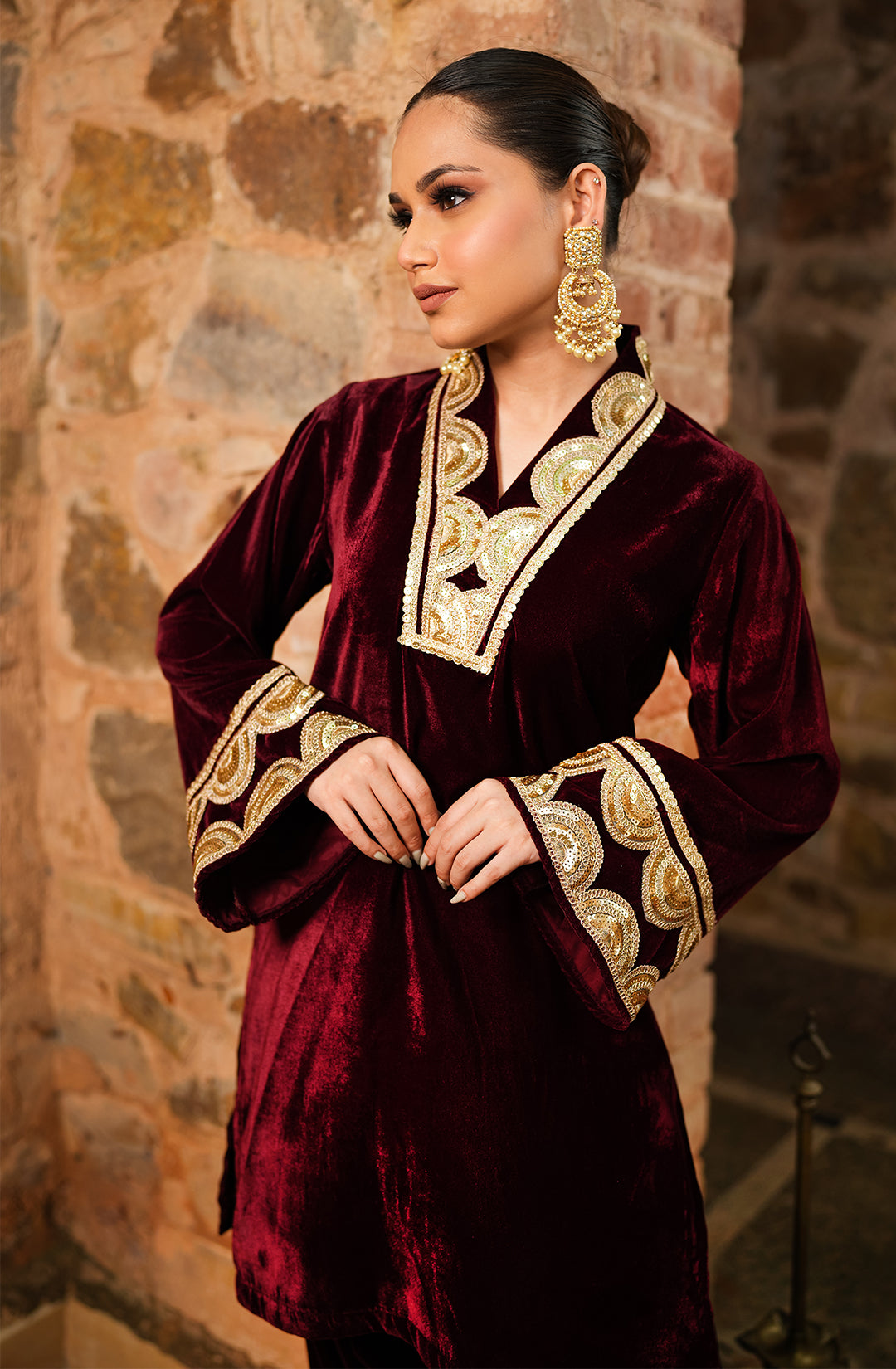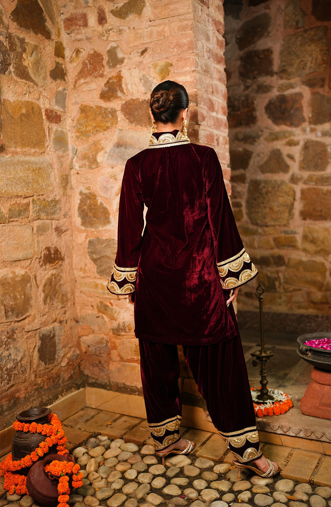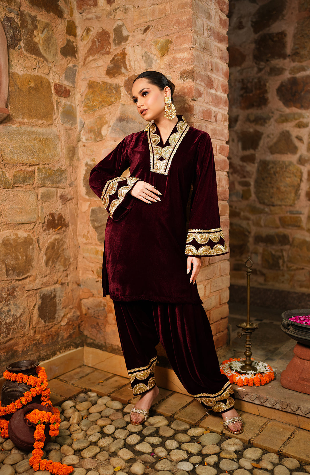 Patiala Velvet Set - Maroon