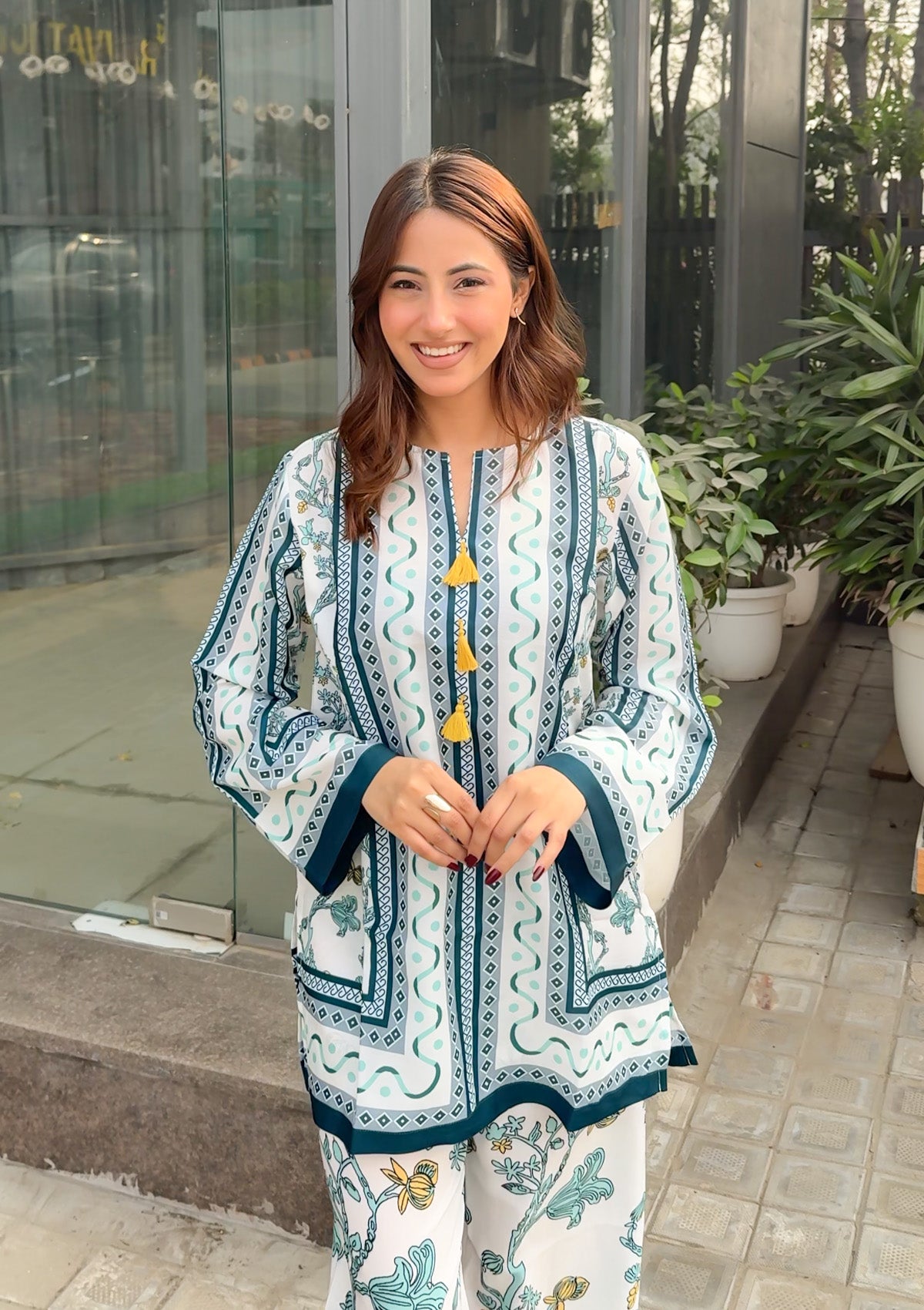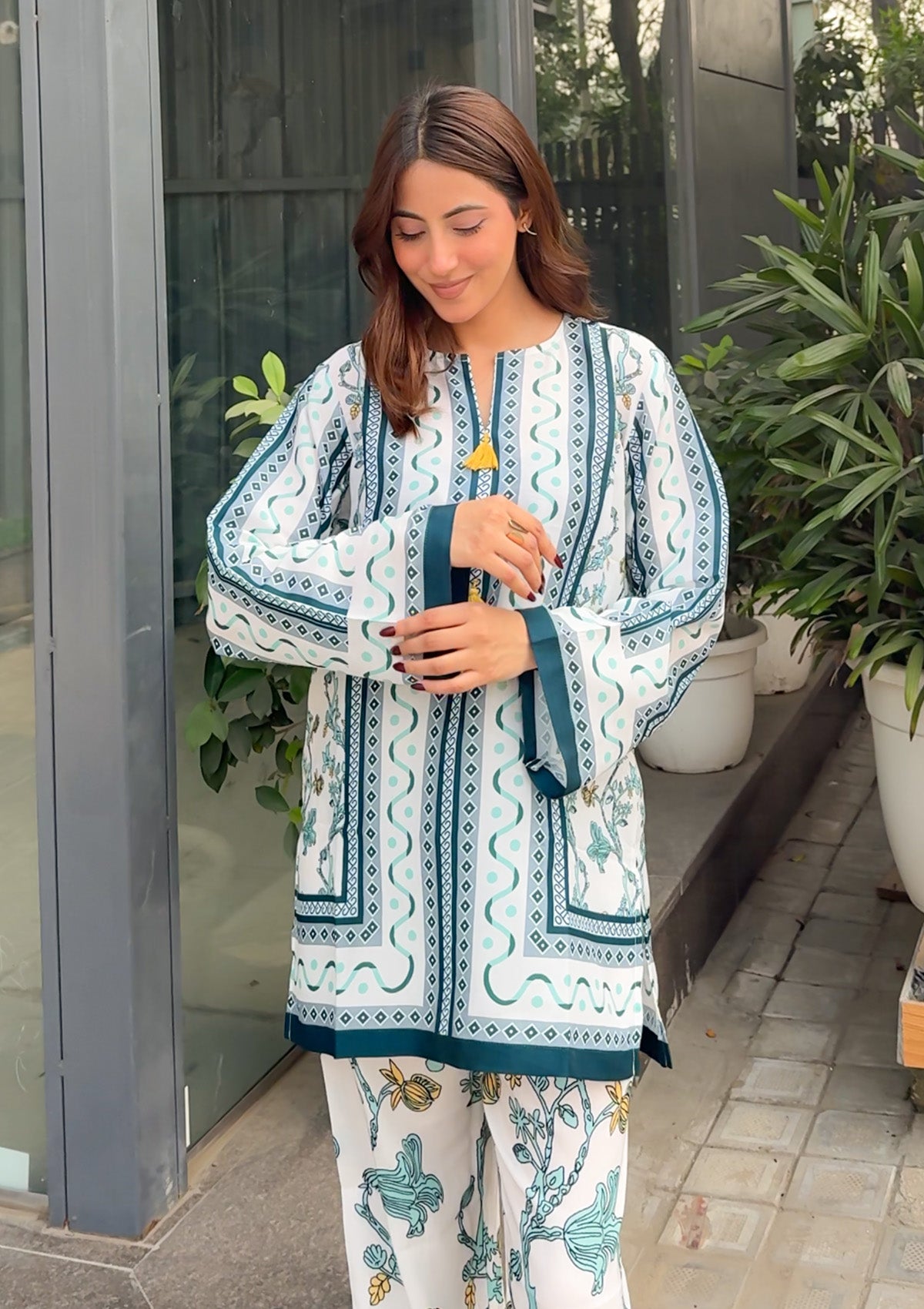 The Mogra Co-ord Set is a fresh blend of elegance and comfort. Featuring a soothing ivory base with delicate green floral prints and bold border detailing, this two-piece outfit adds effortless charm to your everyday and festive looks. Lightweight and versatile, it’s the perfect pick for brunches, gatherings, or casual outings.